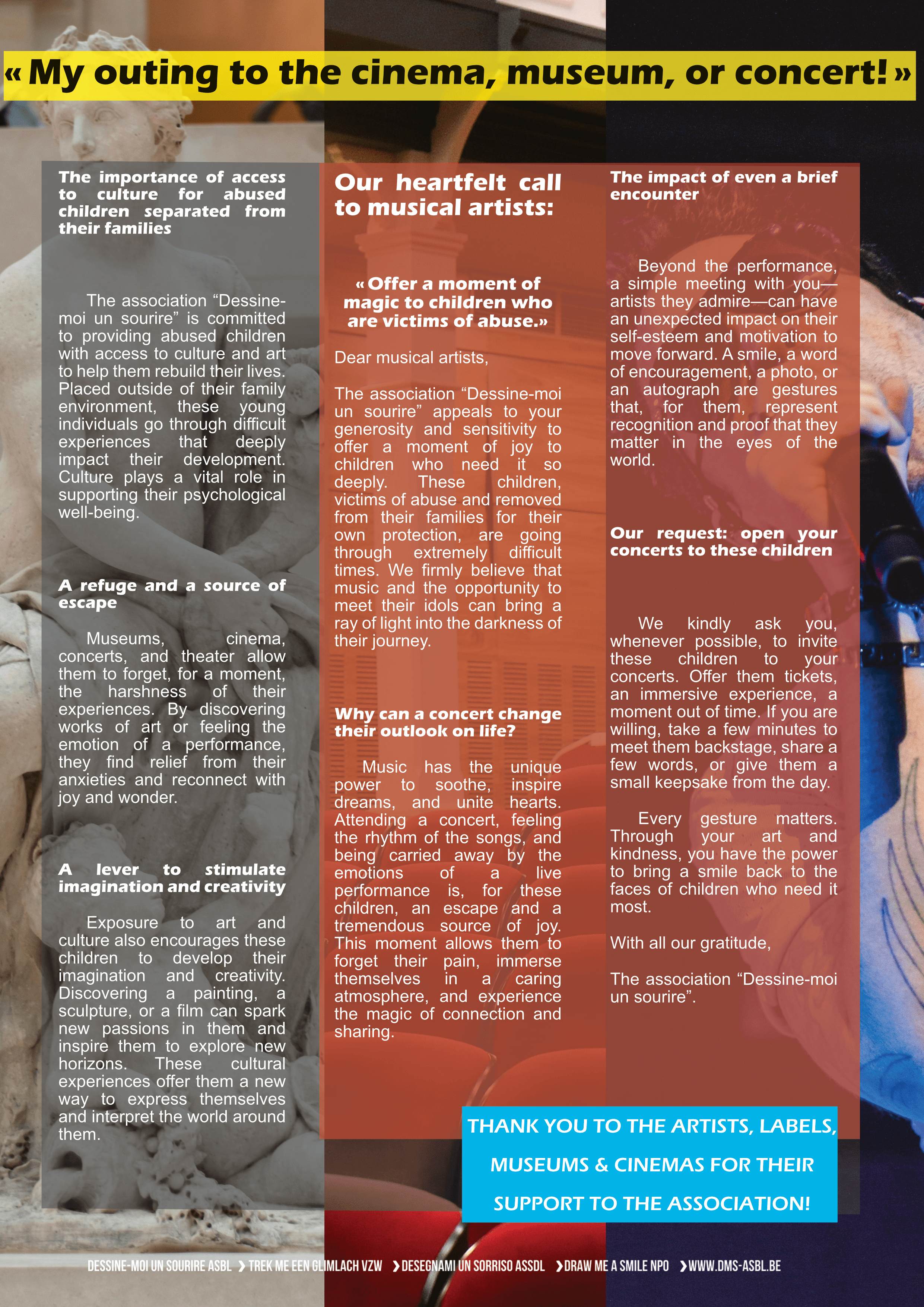 By supporting the association ‘Dessine-moi un sourire’, these companies set an example in social responsibility. Thanks to them, children broken by abuse are regaining hope and finding their path to healing. We are proud to honor them here and warmly thank them on behalf of every child they have helped!