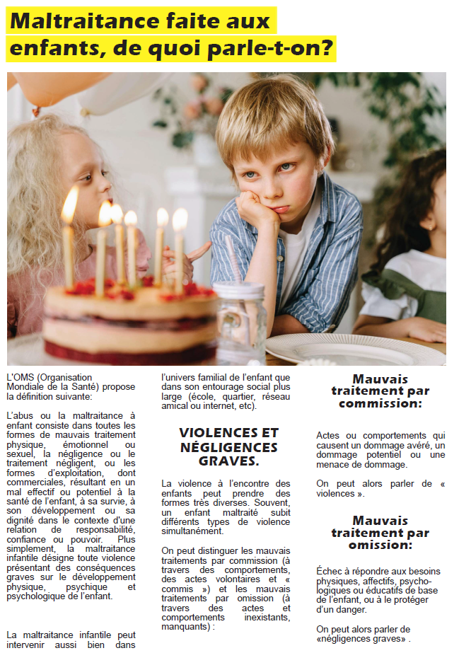 Agissons tous ensemble en tendant la main aux enfants victimes de maltraitance qui soufrent en silence et offrons-leur,